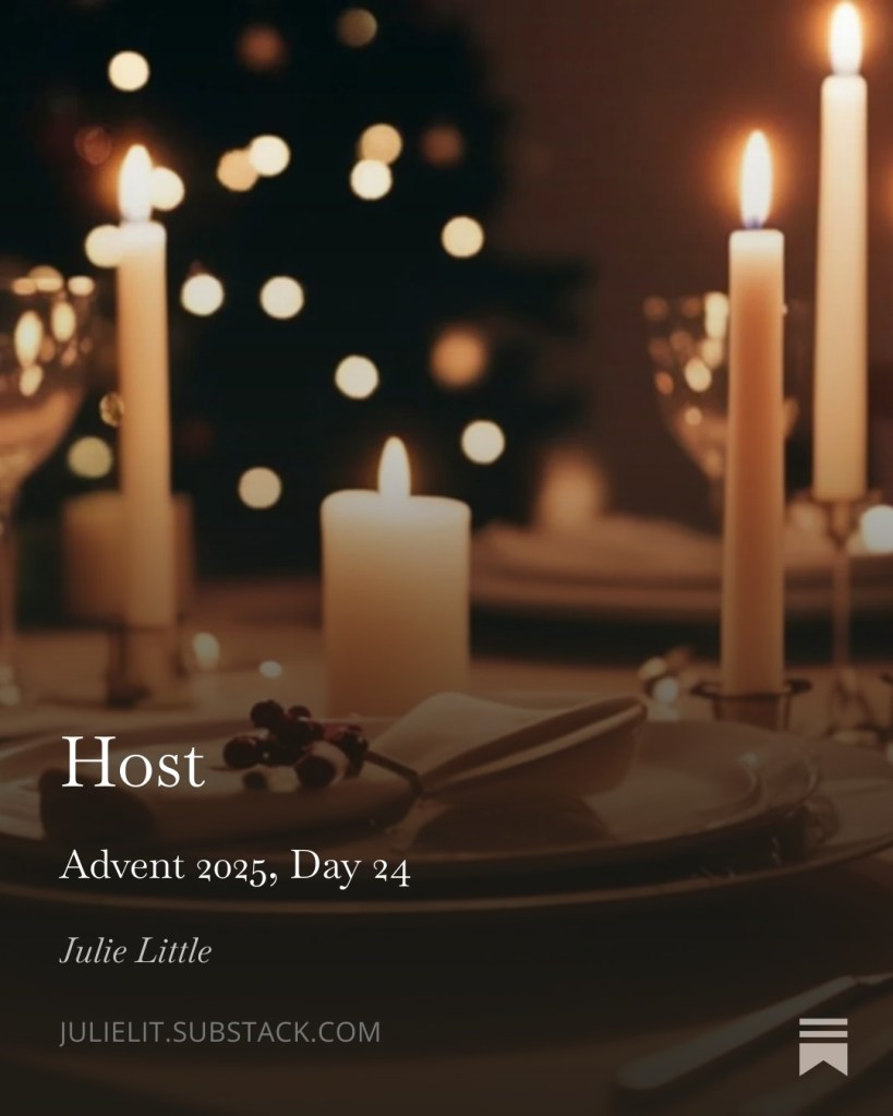 Host December 23, 2025 ~ Julie Little Advent 2025, Day 24 Share this: Click to share on X (Opens in new window) X Click to share on Facebook (Opens in new window) Facebook Like Loading... Related