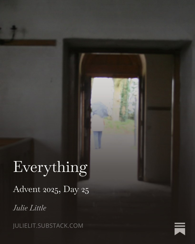 Everything December 24, 2025 ~ Julie Little Advent 2025, Day 25 Share this: Share on X (Opens in new window) X Share on Facebook (Opens in new window) Facebook Like Loading... Related