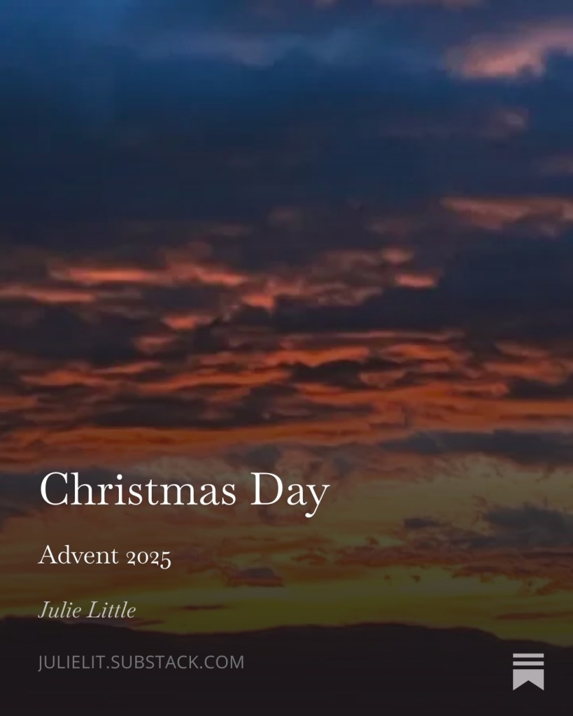 Christmas Day December 25, 2025 ~ Julie Little Advent 2025 Share this: Click to share on X (Opens in new window) X Click to share on Facebook (Opens in new window) Facebook Like Loading... Related